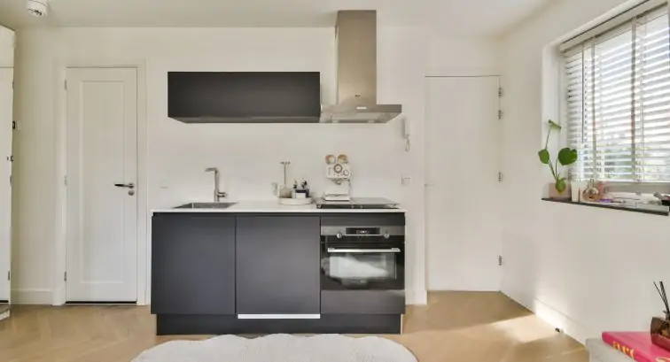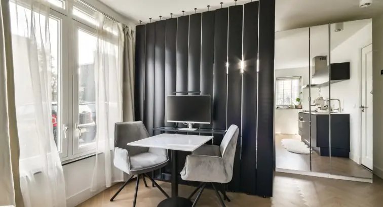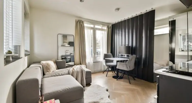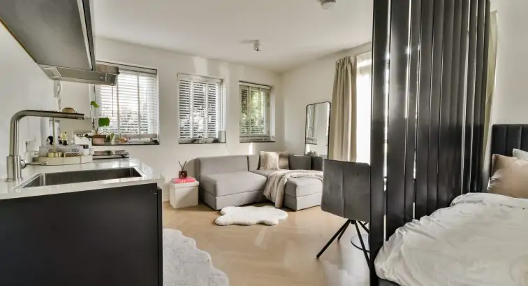 Het appartement, dat in 2021 is gerenoveerd, beschikt over een moderne keuken met koelkast, combimagnetron en inductiekookplaat. Er is een elegante kamerdivider geplaatst voor de semi-afgesloten slaapkamer. De luxe badkamer heeft een inloopdouche, wastafel en toilet.