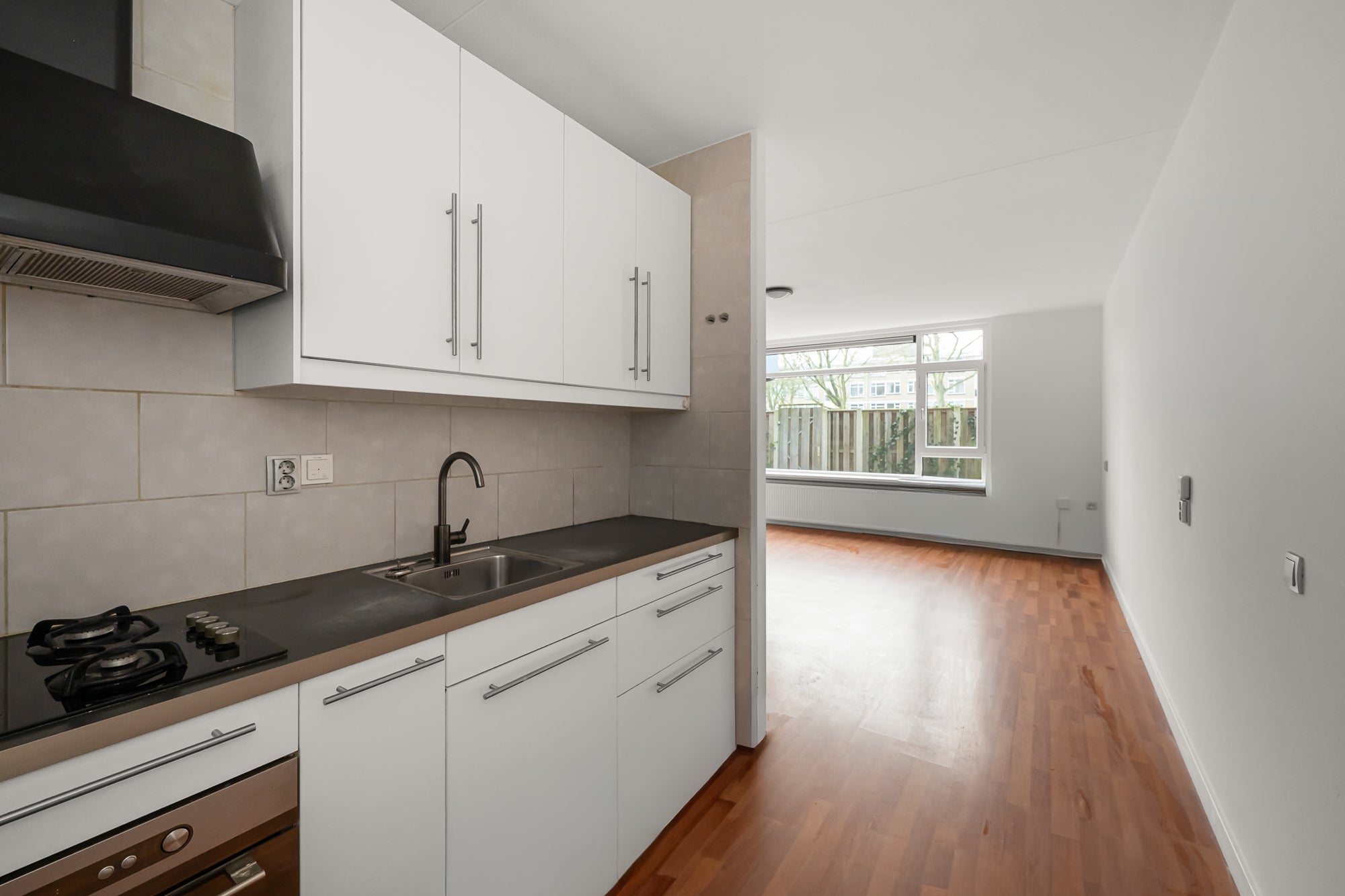 Dit comfortabele twee-kamerappartement op de begane grond in Amsterdam-Noord biedt een woonoppervlak van 62 m² en heeft een ruime, zonnige tuin van 41 m², gelegen op het zuidwesten. De woonkamer, met grote raampartijen en openslaande deuren naar de achtertuin, voelt licht en ruim aan. De halfopen keuken is praktisch ingericht met inbouwapparatuur en biedt een handige opbergkast. De slaapkamer, eveneens met toegang tot de tuin, is een fijne plek om te ontspannen. De luxe badkamer is volledig betegeld en voorzien van een douche, wastafel en ruimte voor wasmachine en droger. Deze woning heeft bovendien een goede isolatie, energielabel B, en ligt in een sociale buurt met voorzieningen in de nabijheid. Ideaal voor starters of senioren die gelijkvloers willen wonen.