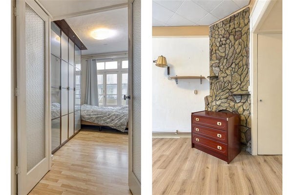 Aan de achterzijde van de woning bevinden zich de twee slaapkamers. Deze rustige plekken bieden je de vrijheid om ze precies in te delen zoals jij dat nodig hebt. Een fijne hoofdslaapkamer en misschien een thuiswerkplek, een inloopkast of een hobbyruimte? Jij bepaalt! Beide kamers kijken uit op de achterzijde van de woning, waar je de nog dichtgebouwde ruimte van het balkon ziet. Deze ruimte kun je nu gebruiken als extra opbergruimte, maar met wat aanpassingen open je het balkon eenvoudig om de dag buiten te beginnen in de vroege zon.
