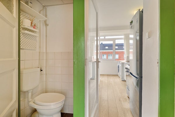 - De portiekflat heeft een woonoppervlakte van 62 m² en beschikt over 2 kamers, waarvan 1 slaapkamer;