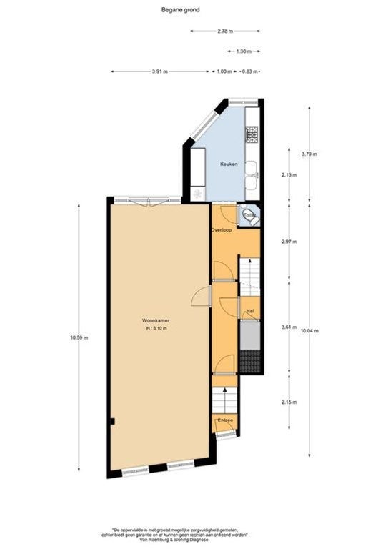 De woning beschikt over een eigen entree op bel-etageniveau en een gedeelde gang met de woning op de eerste etage.