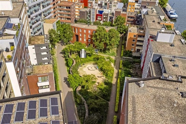 Java Island is a peaceful place to live, surrounded by water and greenery, with the city close by. Directly behind the building are the inner gardens, and a little further away are the swimming and boating waters of the IJ.