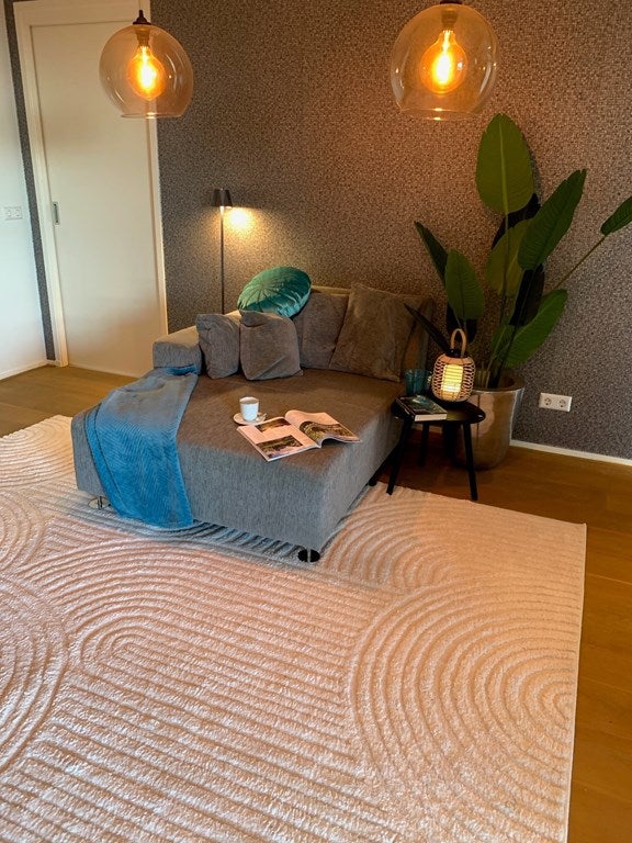 Er is vloerverwarming door het hele appartement en men komt binnen via de hal met gasten toilet, waarna men in de huiskamer met uitzicht op het westen belandt. De houten vloer geeft dit huis een warme sfeer en door de grote ramen komt overal het licht binnen. Het lijkt wel alsof het in dit huis altijd zomer is.