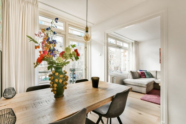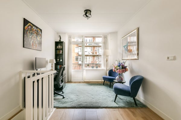 Het appartement is zeer centraal gelegen in Bos en Lommer, een ‘groene oase’ van de stad. In het nabijgelegen Erasmuspark kunt u heerlijk wandelen, picknicken en sporten. Er zijn tal van leuke winkels en horecagelegenheden in de directe omgeving, zoals Bagels & Beans en het bruisende Podium Mozaïek. Voor uw dagelijkse boodschappen heeft u naast de Albert Heijn keuze uit meerdere supermarkten. Dit populaire stadsdeel van Amsterdam is uitgegroeid tot een van de meest dynamische en complete wijken van de stad. Kortom, groen, winkels, scholen, apotheek en gezellige horeca: u vindt het allemaal op loopafstand.