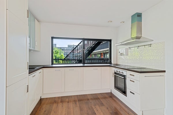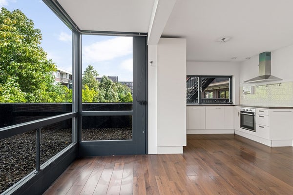 - De galerijflat heeft een woonoppervlakte van 98 m² en beschikt over 3 kamers, waarvan 2 slaapkamers;