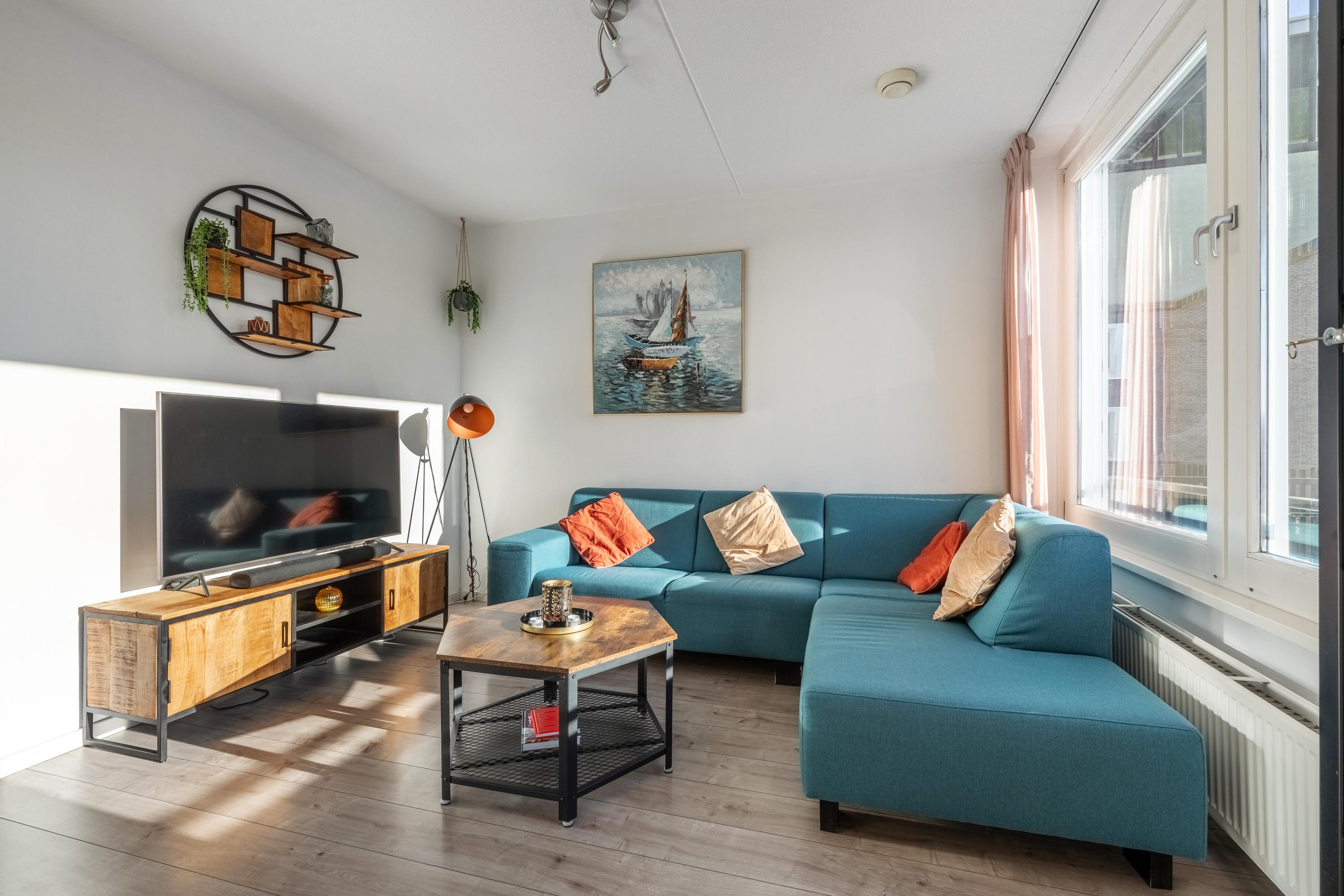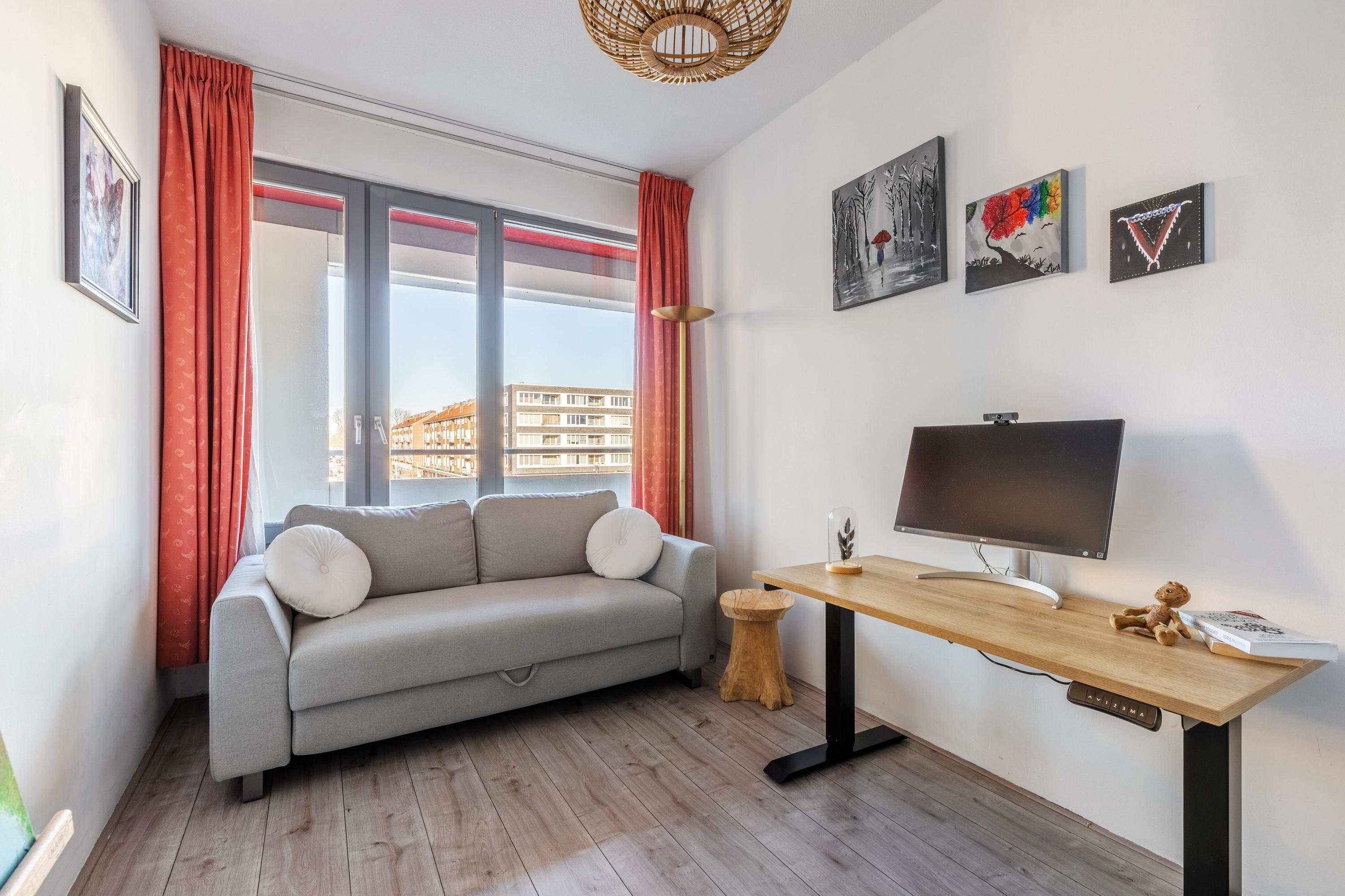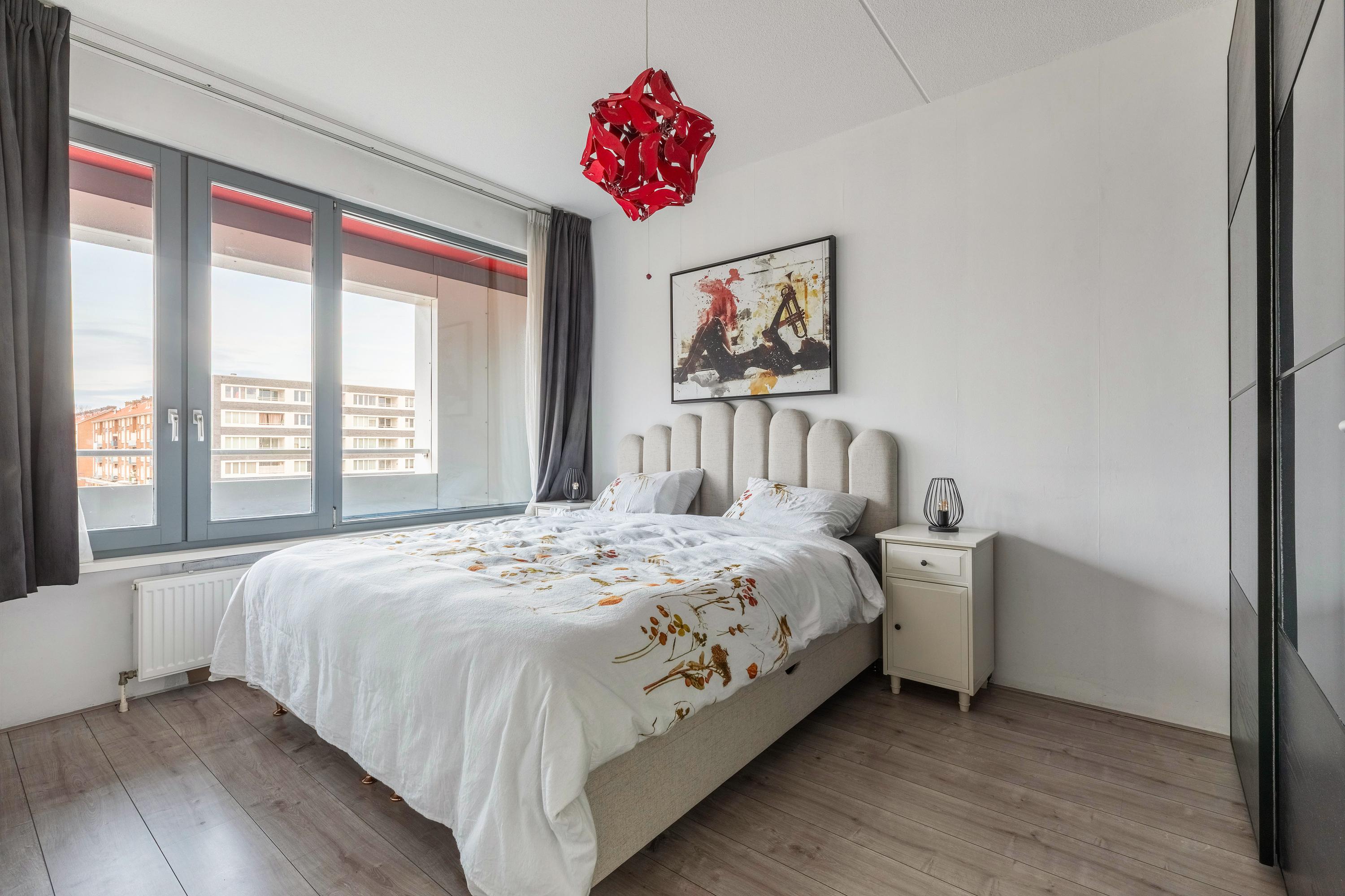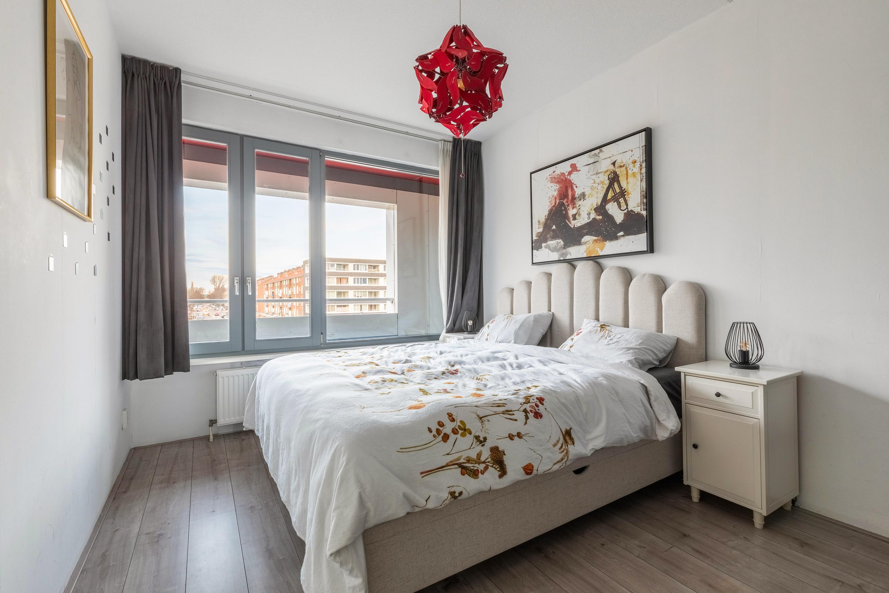 Confuciusplein 59 is een licht en zonnig appartement van ongeveer 82 m², gelegen op de tweede etage van een verzorgd complex in Amsterdam. Met twee slaapkamers en een ruime woonkamer die prachtig verlicht is door grote raampartijen en schuifdeuren, biedt het appartement een comfortabele indeling. Deze schuifpui geeft toegang tot een zonnig terras op het zuidwesten met vrij uitzicht, ideaal om te ontspannen of buiten te dineren.