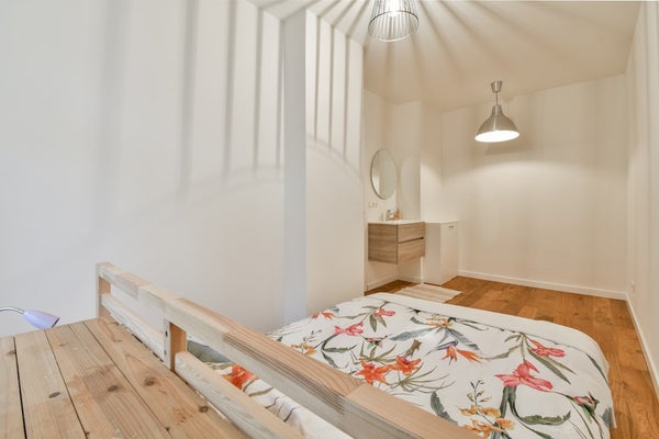 - De tussenverdieping heeft een woonoppervlakte van 54 m² en beschikt over 3 kamers, waarvan 2 slaapkamers;