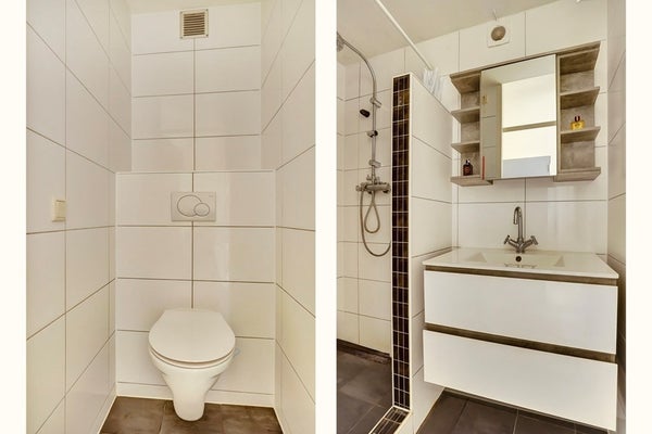 Aan de achterzijde van de woning bevindt zich de tweede slaapkamer, met een prettig en groen uitzicht op de binnentuin. Centraal in het appartement liggen het separate toilet, de badkamer met douche en wastafel, en een extra berging. Op de begane grond van het complex is bovendien een externe berging aanwezig.