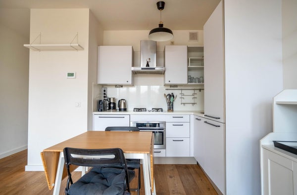 The apartment is easily accessible with many amenities nearby. It's within cycling distance of Amsterdam city center, walking distance from a supermarket, and walking distance from a train station. Furthermore, the nearest major road is just a 2-minute drive away.