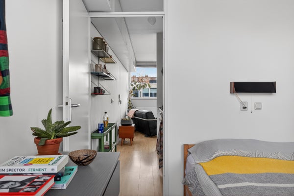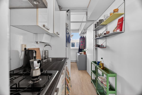 - De galerijflat heeft een woonoppervlakte van 42 m² en beschikt over 2 kamers, waarvan 1 slaapkamer;