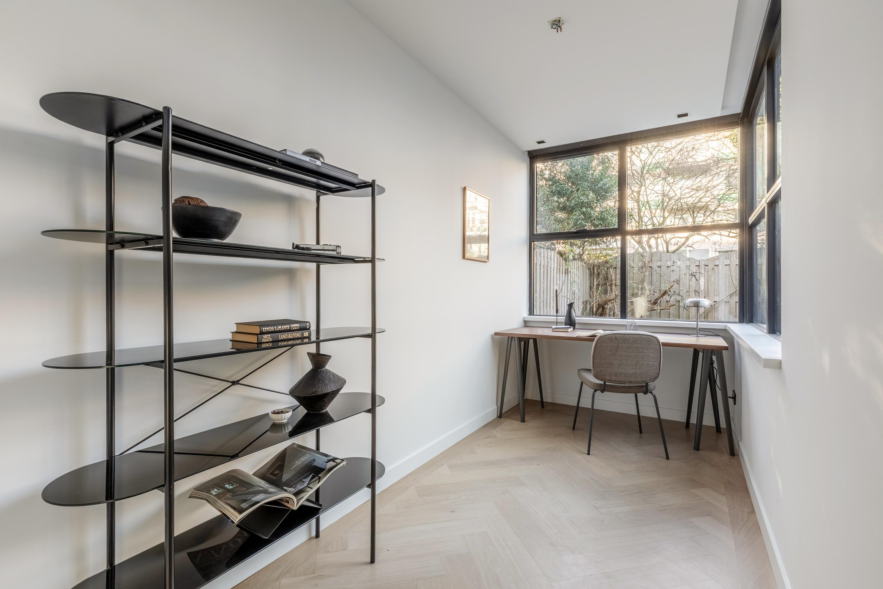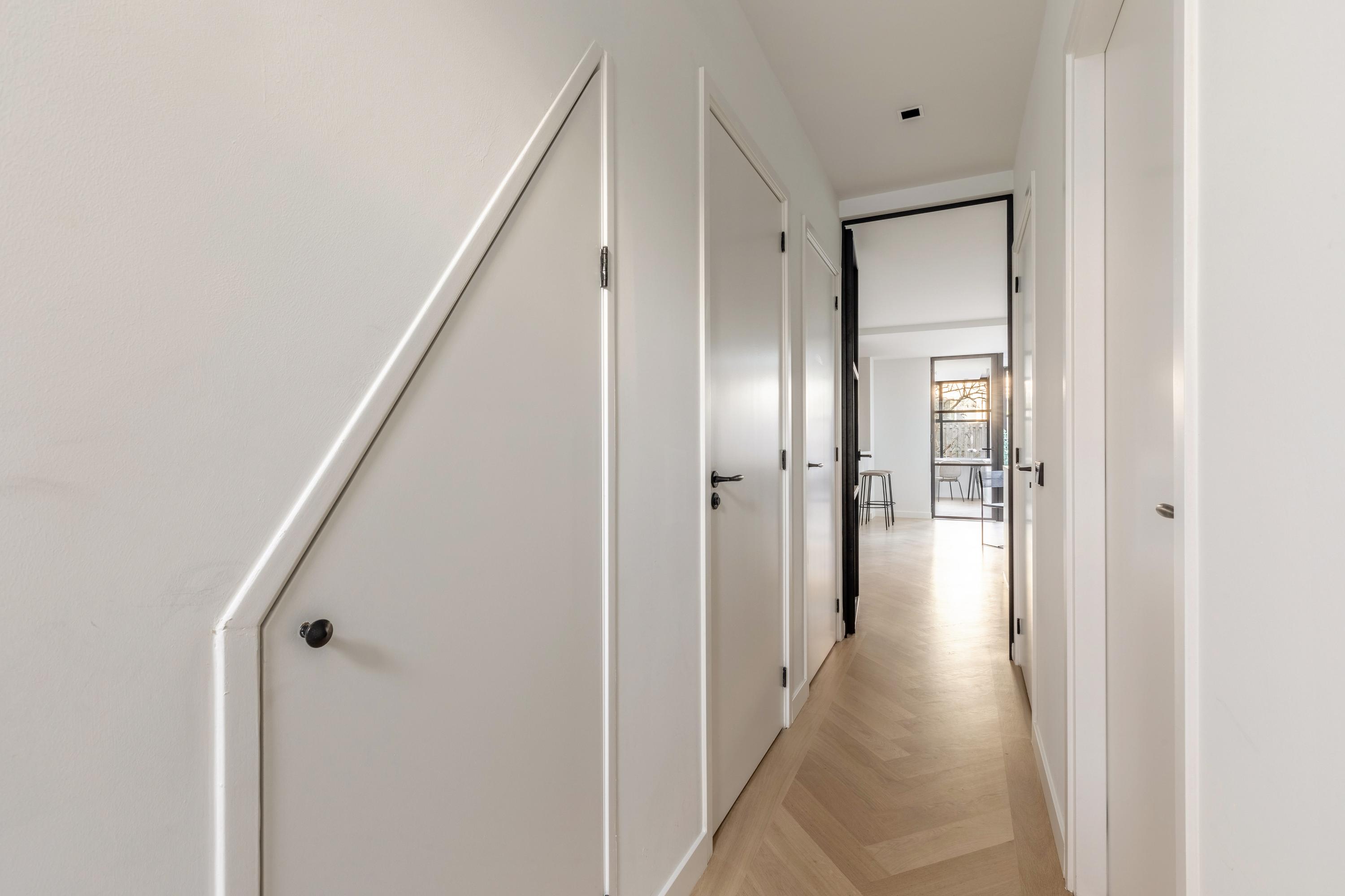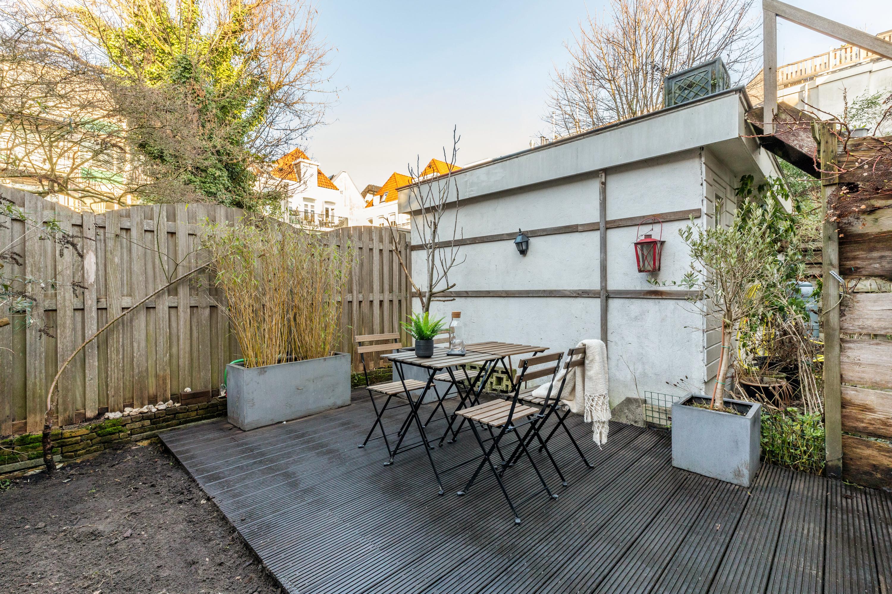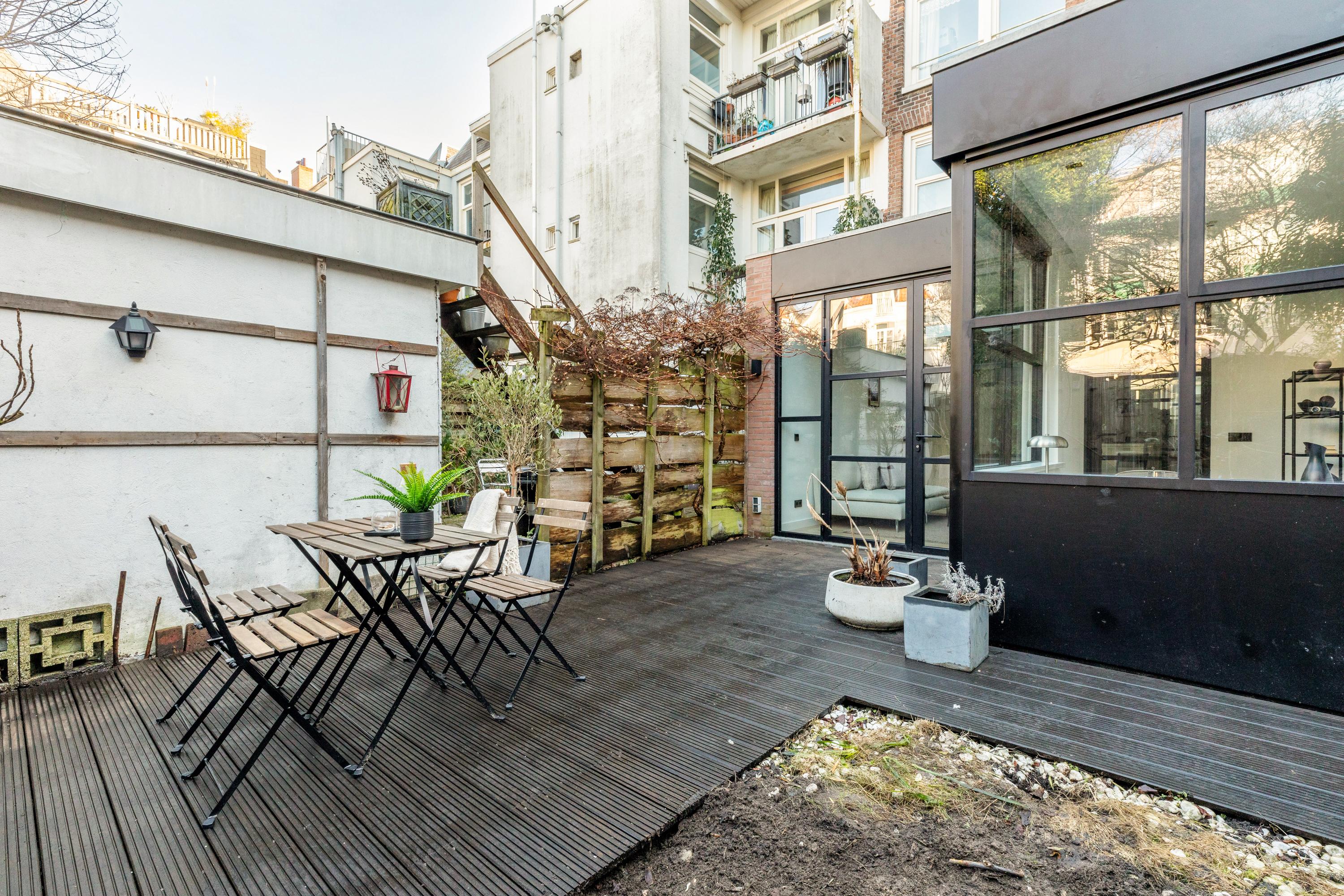 Dit charmante benedenappartement van 48 m², gelegen in de Kinkerbuurt, biedt tal van mogelijkheden. Met een diepe achtertuin van 55 m² en uitbouwmogelijkheden, is deze woning een uniek aanbod op eigen grond. De indeling biedt een hal met toegang tot een separaat toilet en een lichte woonkamer van 23 m², die met schuifdeuren verbindt met de slaapkamer van ruim 12 m², compleet met dubbelglas en inbouwkasten. De keuken biedt toegang tot de ruime achtertuin en herbergt een douche. De schuur met verwarming is voorzien van ruimte voor een wasmachine. Gelegen in een rustige straat met diverse voorzieningen, zoals de Hallen, yoga- en pilatesstudio's en een breed scala aan restaurants, is alles binnen handbereik. Het appartement is gerenoveerd en goed onderhouden, met een energielabel C.