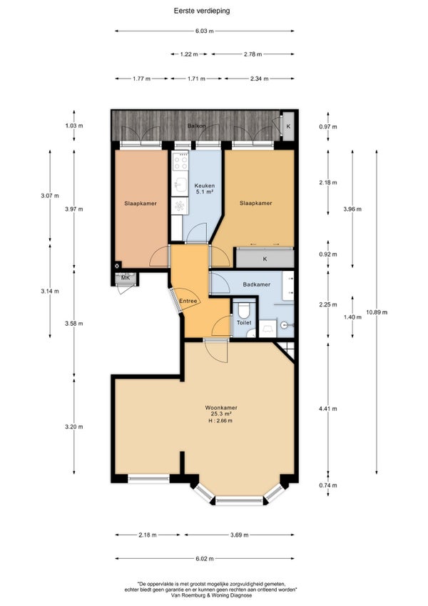 - De bovenwoning heeft een woonoppervlakte van 59 m² en beschikt over 3 kamers, waarvan 2 slaapkamers;