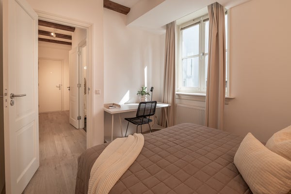 - De tussenverdieping heeft een woonoppervlakte van 52 m² en beschikt over 2 kamers, waarvan 1 slaapkamer;