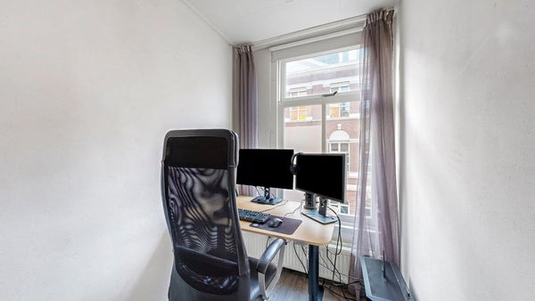 De woning ligt op de tweede verdieping en voelt bij binnenkomst direct ruim en licht. Aan de voorzijde bevinden zich twee goed bemeten slaapkamers. De hoofdslaapkamer biedt voldoende ruimte voor een tweepersoonsbed en de tweede kamer is ideaal als werkplek of als logeerkamer.