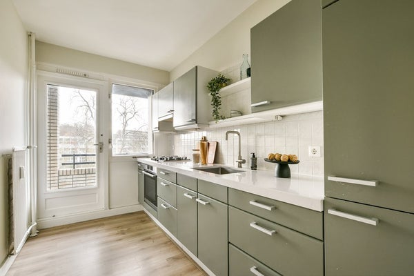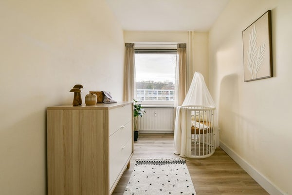 - De portiekflat heeft een woonoppervlakte van 87 m² en beschikt over 4 kamers, waarvan 3 slaapkamers;