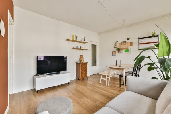 • De bovenwoning heeft een woonoppervlakte van 43 m² en beschikt over 2 kamers, waarvan 1 slaapkamer;