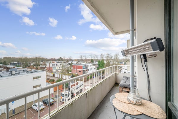 Vanuit de woonkamer stap je het ruime balkon op, waar je heerlijk kunt genieten van rust, zon en een vrij uitzicht.