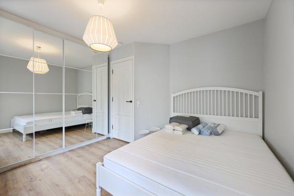 Er zijn twee ruime slaapkamers. De grote slaapkamer heeft een prachtig grote ingebouwde kledingkast en openslaande deuren naar het balkon aan de achterkant gelegen. Tweede slaapkamer kan ook prima als slaapkamer gebruikt worden.