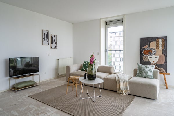 - De galerijflat heeft een woonoppervlakte van 93 m² en beschikt over 3 kamers, waarvan 2 slaapkamers;