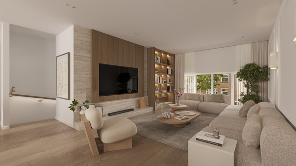 - De tussenverdieping heeft een woonoppervlakte van 98 m² en beschikt over 4 kamers, waarvan 3 slaapkamers;