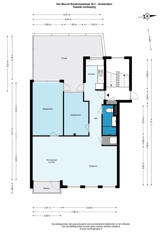 • De bovenwoning heeft een woonoppervlakte van 74 m² en beschikt over 3 kamers, waarvan 2 slaapkamers;