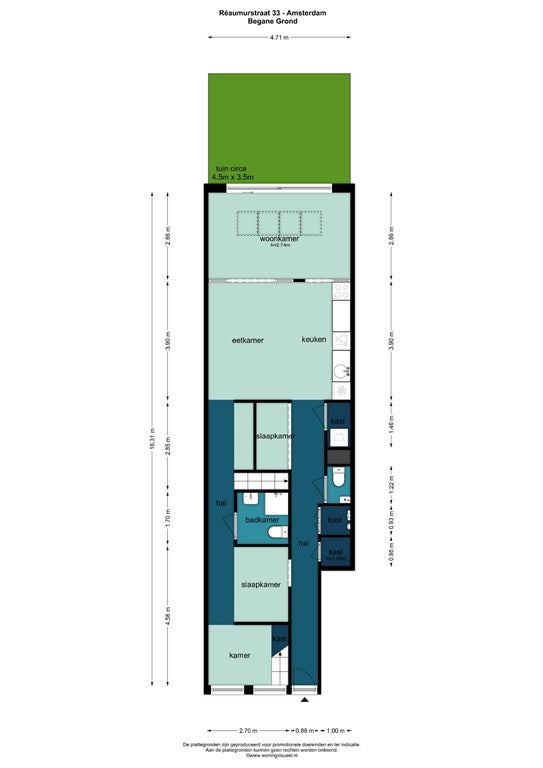 - Aanwezig (16 m², gelegen op het noordwesten)