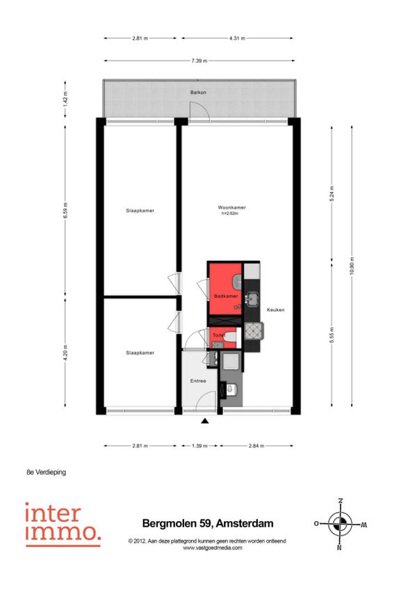 - De galerijflat heeft een woonoppervlakte van 80 m² en beschikt over 3 kamers, waarvan 2 slaapkamers;