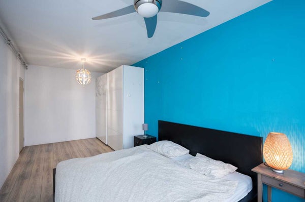 Dit appartement in de Molenwijk heeft een prettige indeling met twee slaapkamers en een royaal en zonnig balkon op het zuiden. De woning biedt ongeveer 80 m² woonoppervlakte, met een ruime woonkamer die veel daglicht ontvangt door de grote ramen. De keuken is praktisch ingericht en voorzien van moderne inbouwapparatuur. Er is een nette badkamer met inloopdouche en wastafel, evenals een separaat toilet. De eigen parkeerplaats in het complex maakt het parkeren eenvoudig. De erfpacht is afgekocht tot 15 juli 2060, wat een zekere toekomst biedt. Het appartement is gelegen in een groene woonwijk dicht bij dagelijkse voorzieningen, met goede busverbindingen en metrostation Noord op korte afstand. De woning is per direct beschikbaar.