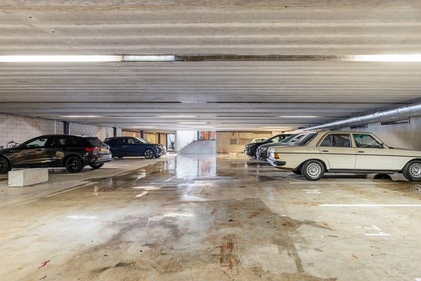 Via de gezamenlijke entree bereik je met de lift de vijfde verdieping. De berging en parkeerplaats bevinden zich op de begane grond.