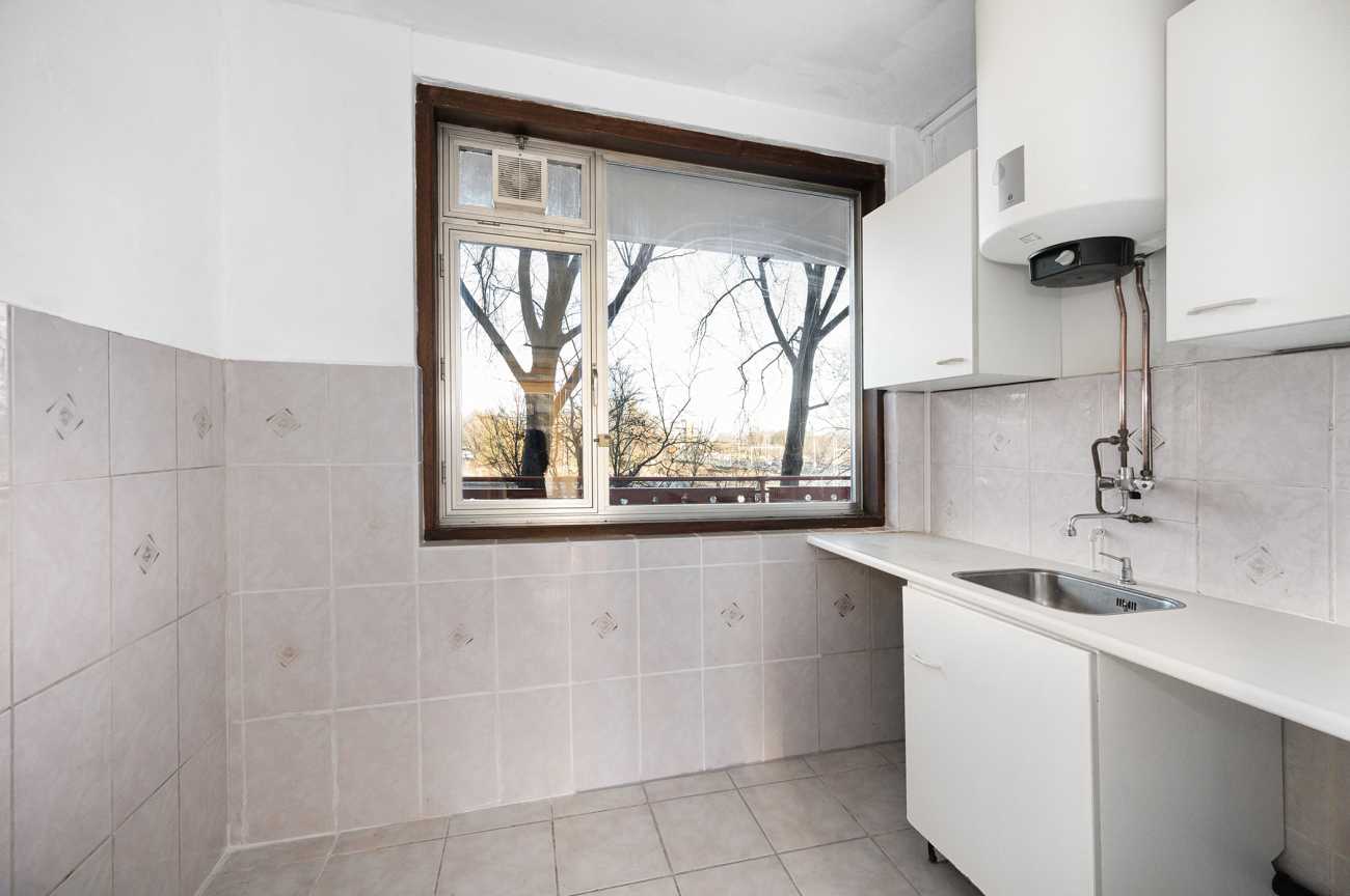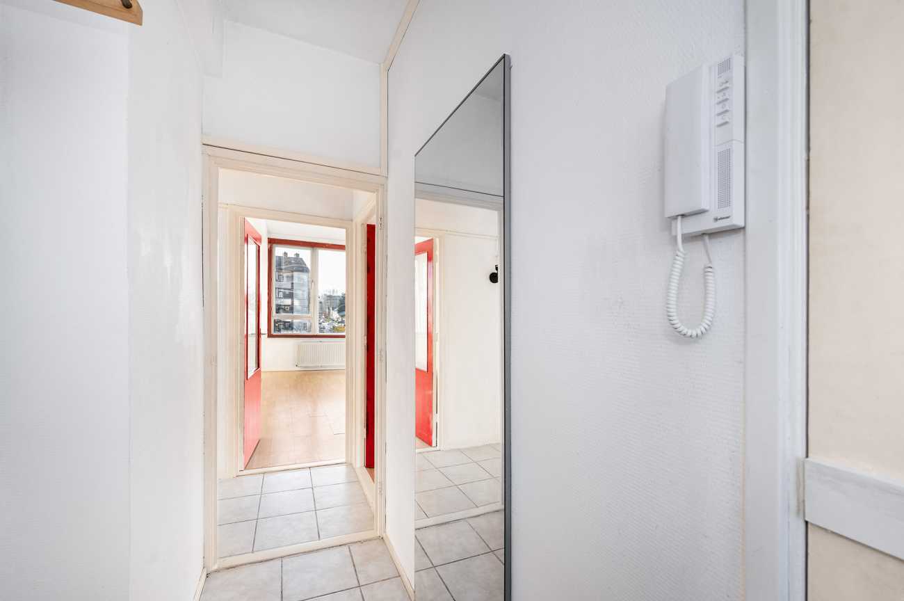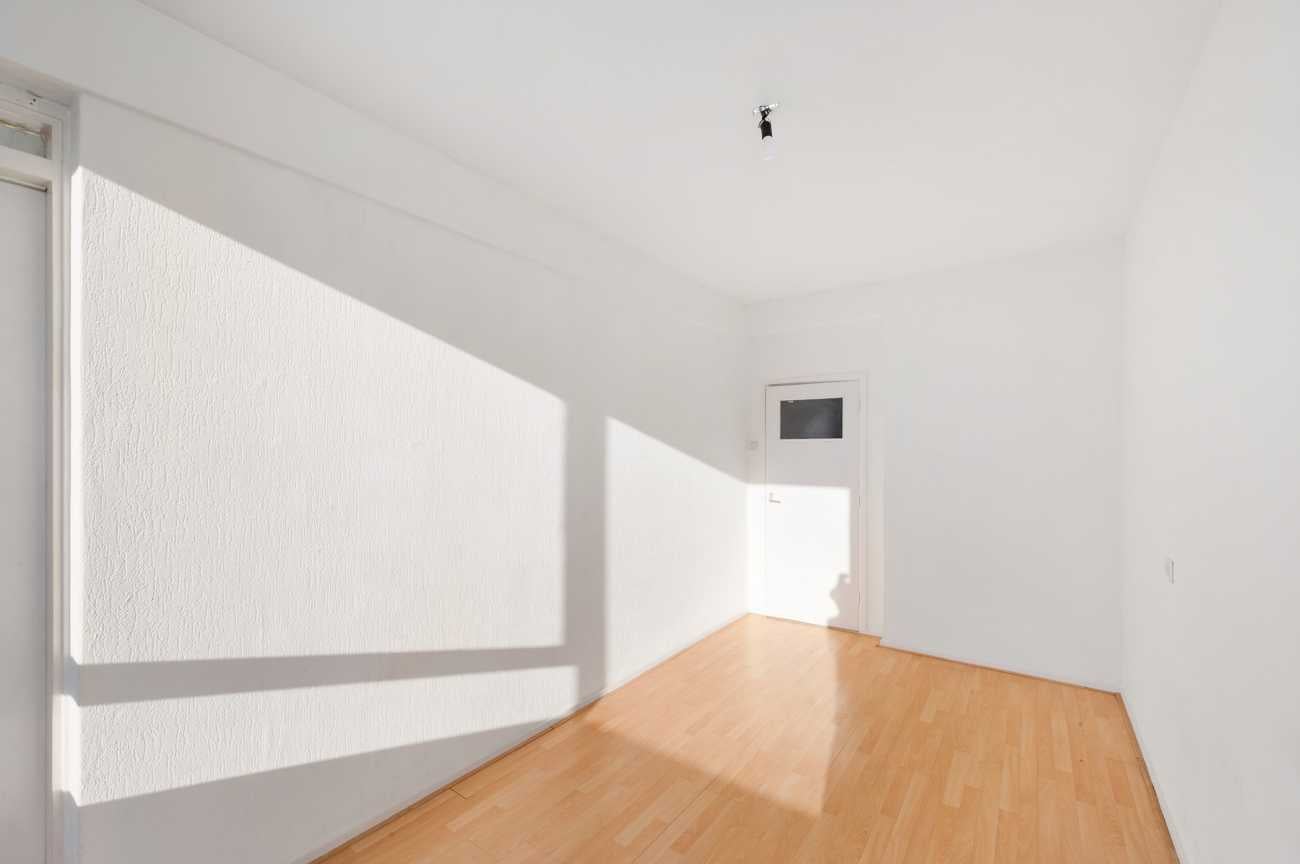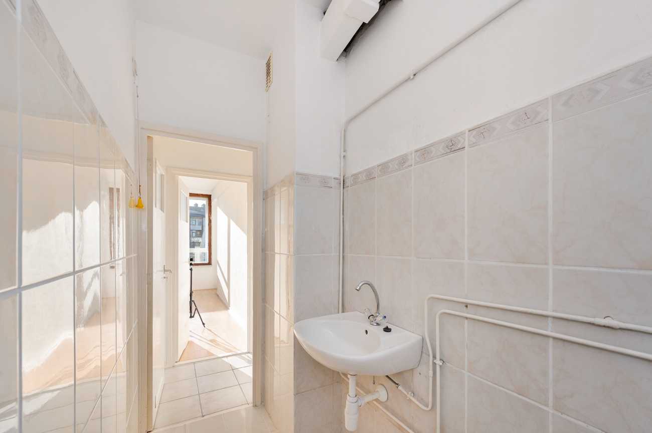 Het appartement op de tweede verdieping heeft twee ruime slaapkamers en een derde kamer die ideaal kan zijn als extra slaapkamer of kantoor. De badkamer is eenvoudig, en de keuken kan naar eigen wens worden ingericht. Met 78,10 m² woonoppervlakte en recente schilderwerk, is deze ruimte klaar voor modernisering. Erfpacht is eeuwigdurend afgekocht. De servicekosten bedragen 376 euro p.m. en het energielabel is D.
