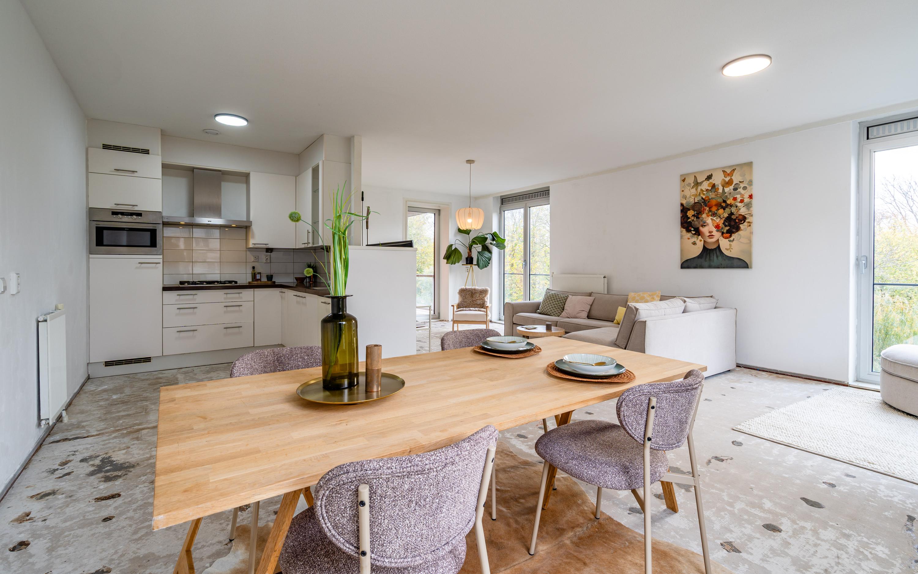 - De galerijflat heeft een woonoppervlakte van 94 m² en beschikt over 3 kamers, waarvan 2 slaapkamers;