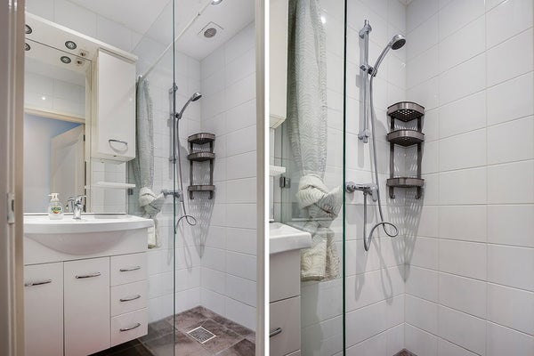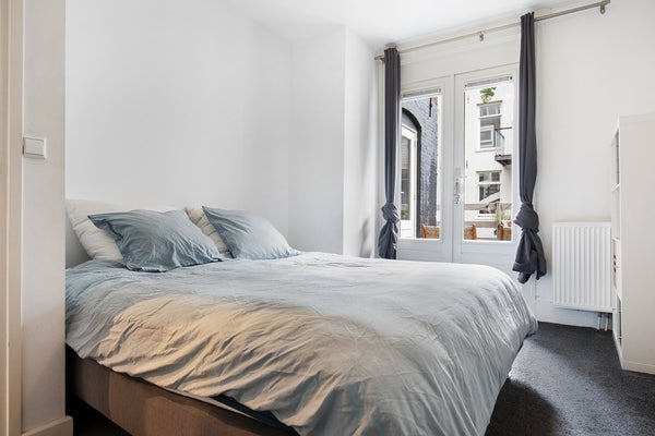 De moderne badkamer beschikt over een inloopdouche met glazen wand en een wastafelmeubel; daarnaast is er een apart toilet met fonteintje. De slaapkamer biedt niet alleen veel rust en comfort, maar ook directe toegang tot het indrukwekkende terras – een zeldzame buitenruimte in deze gewilde buurt.