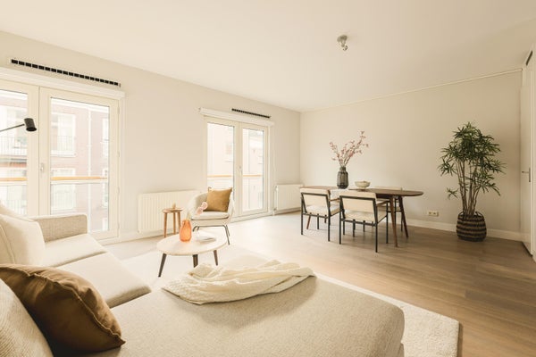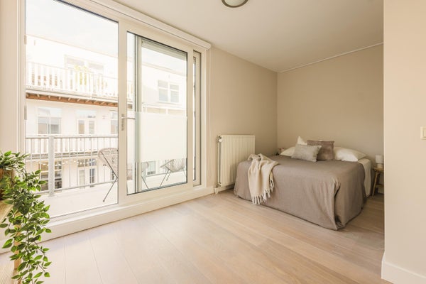 Fantastic double upper apartment of 98 m², located in the highly sought-after De Pijp area, featuring three bedrooms and an east-facing balcony. This lovely apartment is situated on the second and third floors of a modern apartment complex and benefits from the comfort of an elevator. A parking space in the underground garage is also available for purchase. The ground lease has been bought off in perpetuity!