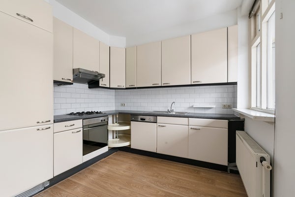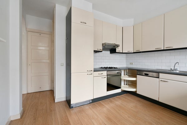 Aan de rustige achterzijde bevindt zich de keuken, in hoekopstelling. Deze is voorzien van diverse inbouwapparatuur waaronder een koelkast, vriezer, gasfornuis met afzuigkap, oven en vaatwasser.