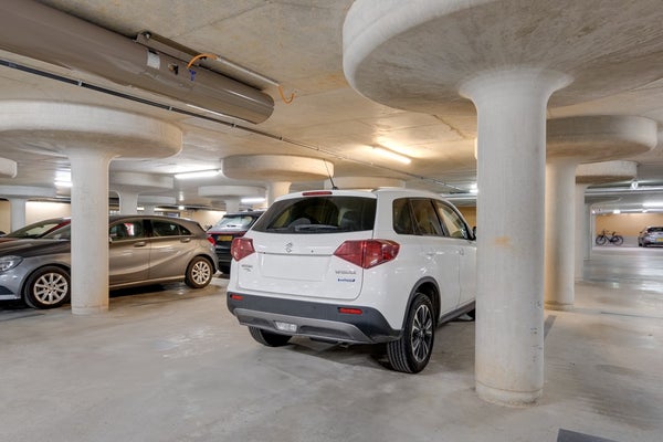 Een groot pluspunt is de eigen parkeerplaats in de afgesloten parkeergarage onder het complex. Het is van alle gemakken voorzien.