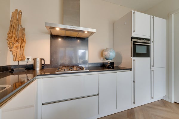 De luxe open keuken is modern en strak uitgevoerd en voorzien van diverse hoogwaardige inbouwapparatuur, zoals een gaskookplaat, combioven, vaatwasser, koelkast en vriezer van Siemens. De keuken biedt veel werk- en bergruimte en is perfect voor zowel de dagelijkse maaltijd als uitgebreid koken. Dankzij de open indeling blijft u altijd in contact met uw gasten in de woonkamer.