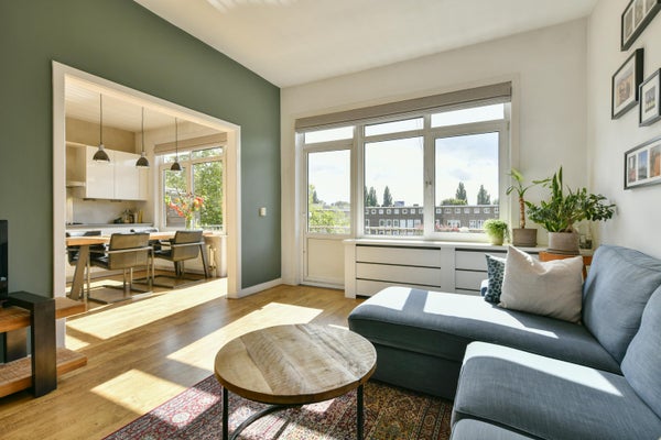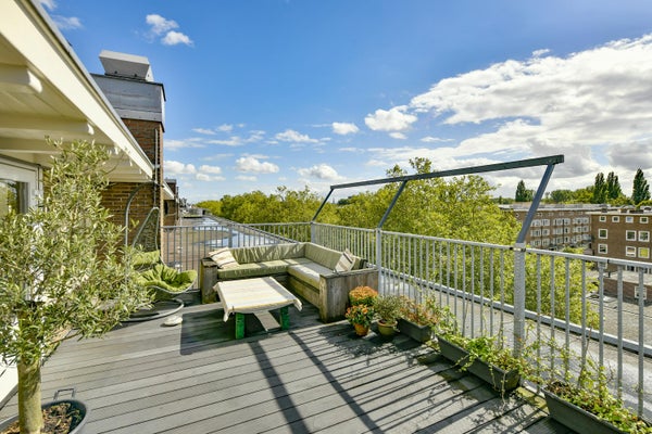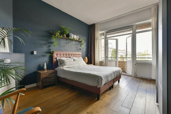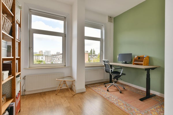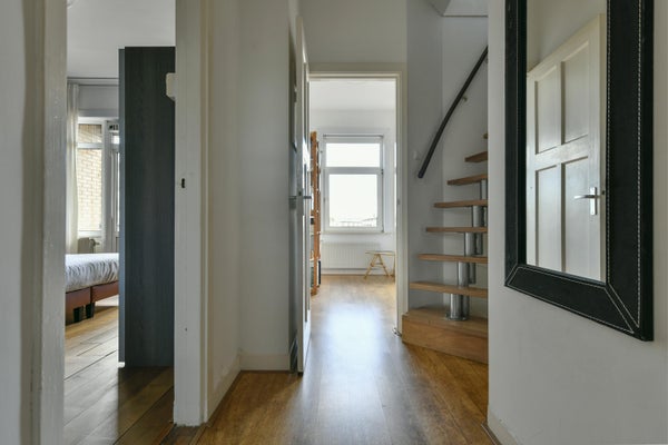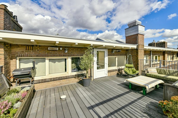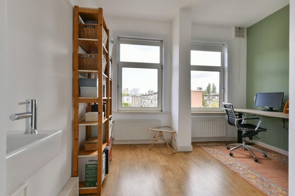 Deze ruime bovenwoning in Bos en Lommer biedt een woonoppervlakte van 92 m² en heeft 3 slaapkamers. De woning is goed onderhouden en beschikt over een uniek dakterras van 26 m² met vrij uitzicht. De indeling omvat een hal met toegang tot twee slaapkamers, waarvan er één met openslaande deuren naar het balkon leidt. De moderne badkamer is uitgerust met een wastafel, zwevend toilet en inloopdouche. De lichte woonkamer met toegang tot een zonnig balkon biedt prachtig uitzicht. De duurzame L-vormige keuken, vernieuwd in 2014, beschikt over inbouwapparatuur. De vierde verdieping is bereikbaar via een vaste trap en kan als derde slaapkamer worden gebruikt. Het appartement ligt in een levendige buurt met uitstekende voorzieningen en goede verbindingen.