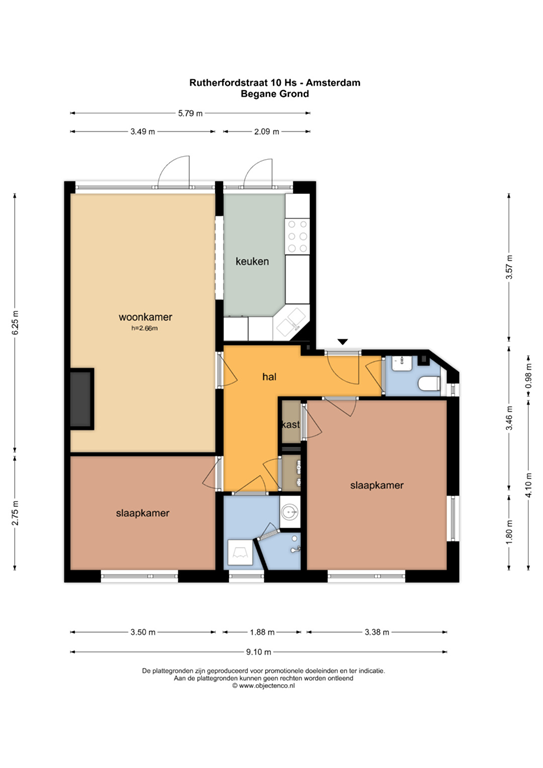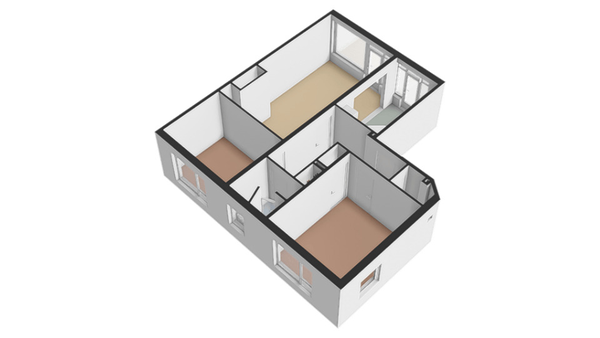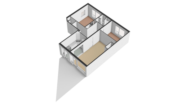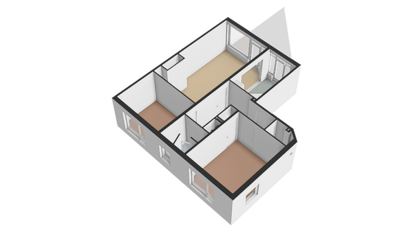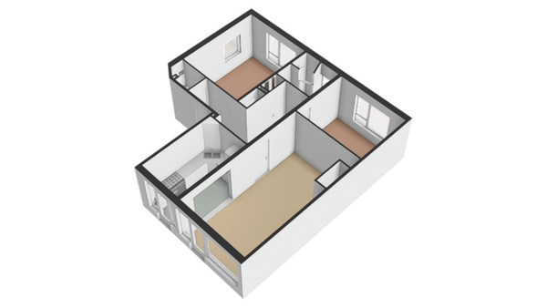 - De benedenwoning heeft een woonoppervlakte van 69 m² en beschikt over 3 kamers, waarvan 2 slaapkamers;