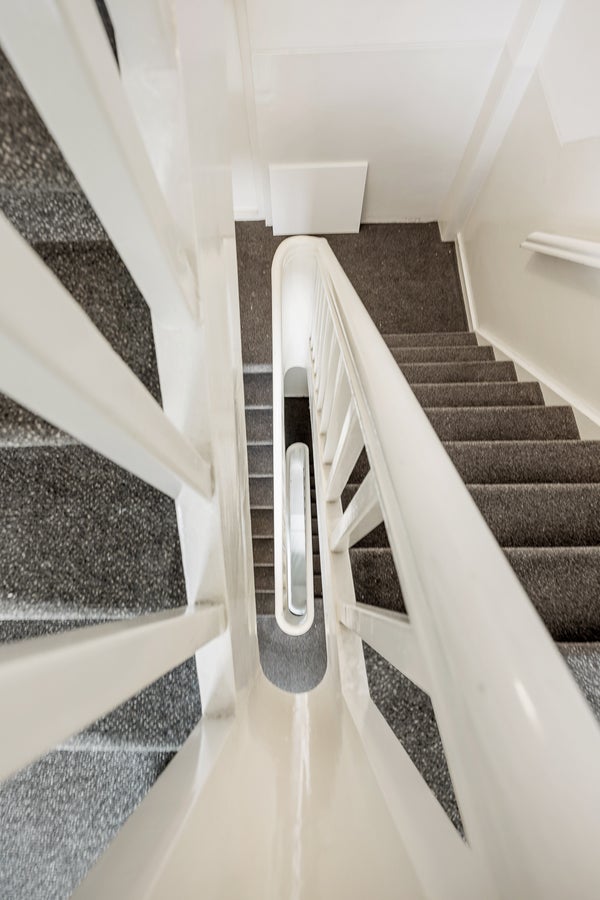 Shared entrance with video intercom system and renovated staircase providing access to the upper floors.