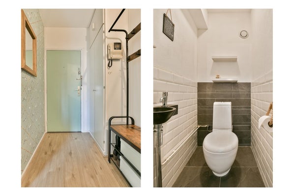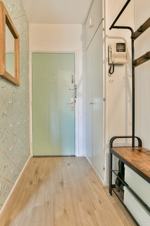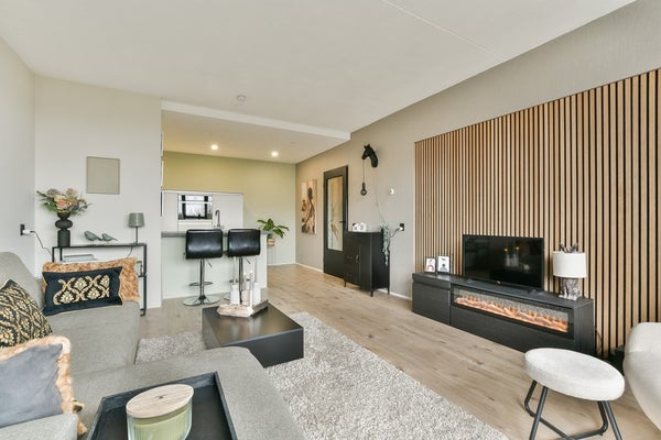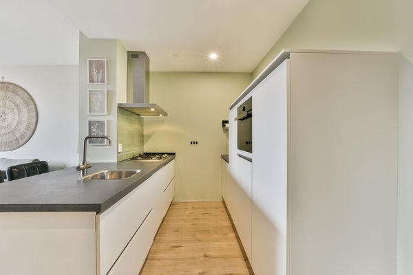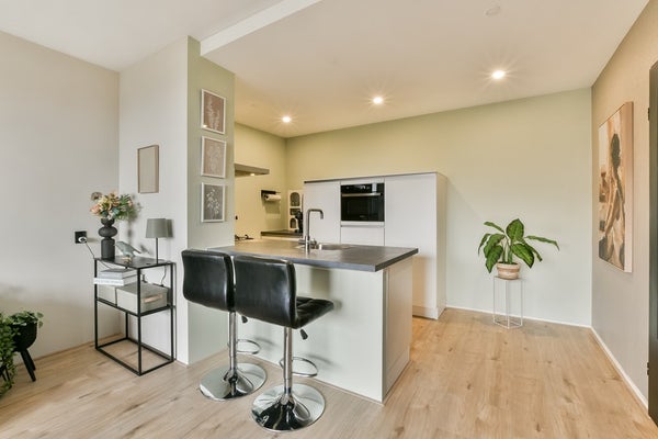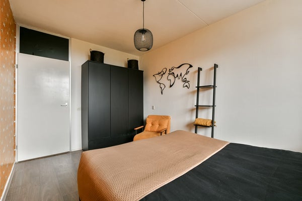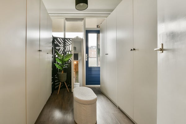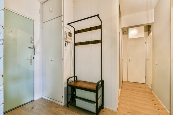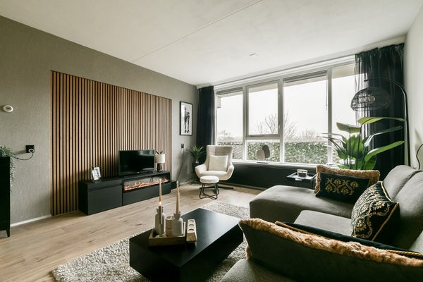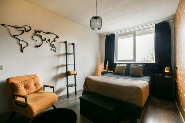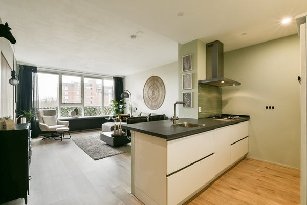 The apartment is situated on the second floor (accessible by lift) and welcomes you into a spacious hallway. The living room is a haven of light thanks to large, recently renovated windows (HR++ glass) that offer a beautiful, ever-changing view over the park. There's plenty of space for a cosy seating area and dining table. The semi-open kitchen is practically laid out and equipped with recently renovated built-in appliances.