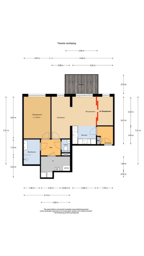 - De bovenwoning heeft een woonoppervlakte van 67 m² en beschikt over 3 kamers, waarvan 2 slaapkamers;