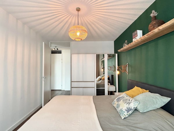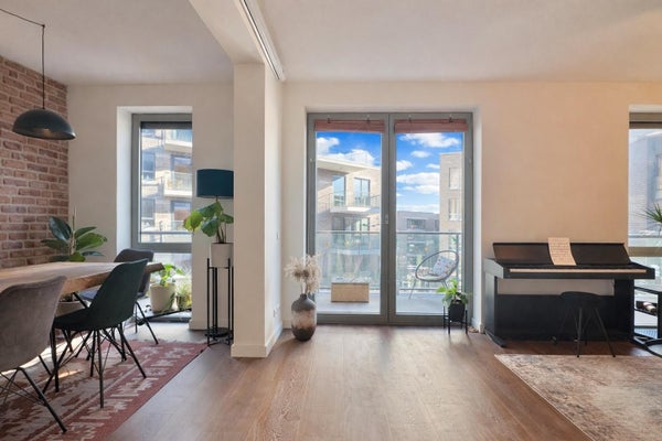Beautifully located in the popular Oostelijk Havengebied, in the Cruquiusbuurt of Amsterdam East, this well-designed apartment is situated on the second floor of a modern residential complex. The apartment currently features a one-bedroom layout, complemented by a spacious covered balcony and a functional open-plan living area that combines comfort, light and practicality. Thanks to the generous size of the living and dining area, the apartment can easily be converted into a two-bedroom home by creating an additional room within the living space. This potential layout change is clearly illustrated in the accompanying visuals, including renderings that demonstrate how such an adjustment can be realised.