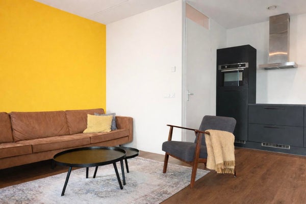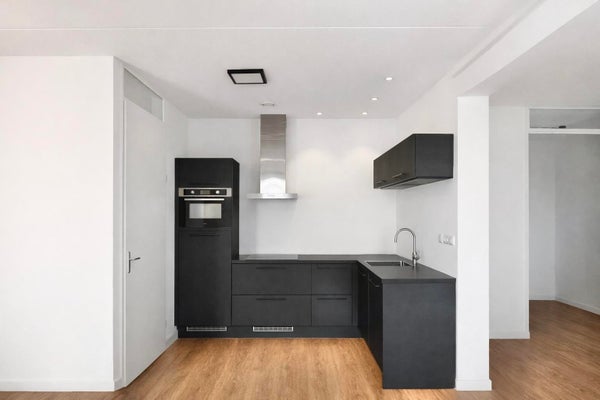De woonkamer met open keuken en eetgedeelte staat in directe verbinding met het royale overdekte balkon van circa 8 vierkante meter, waardoor de buitenruimte een comfortabel verlengstuk vormt van de leefruimte. De badkamer is voorzien van een dubbele wastafel, een inloopdouche (regendouche en handdouche) en een handdoekradiator. Daarnaast beschikt de woning over een separaat toilet. Tevens is er een ruime was- en bergruimte van circa 5 vierkante meter, geschikt voor een wasmachine en droger, welke is geïntegreerd in de woonruimte.