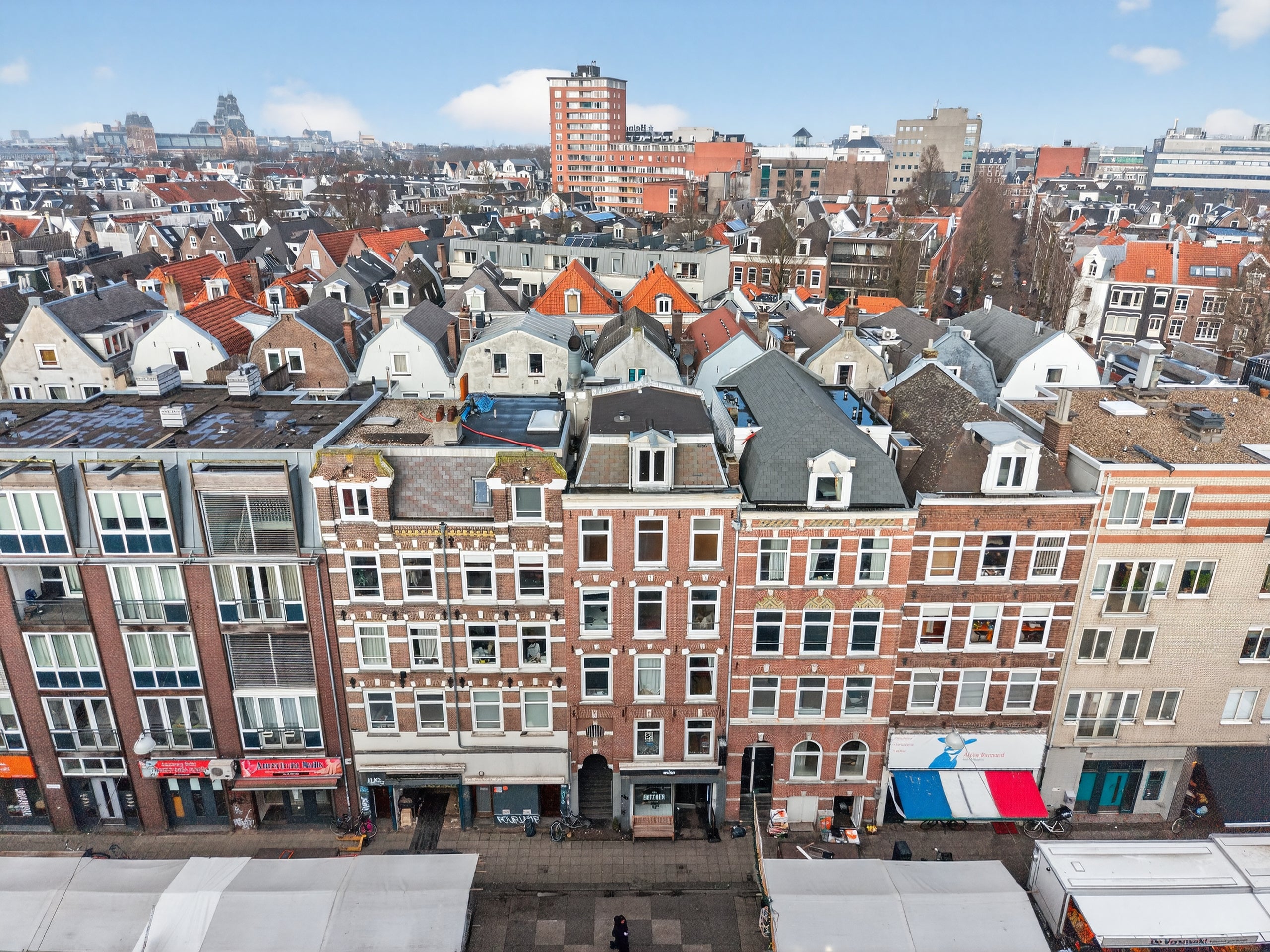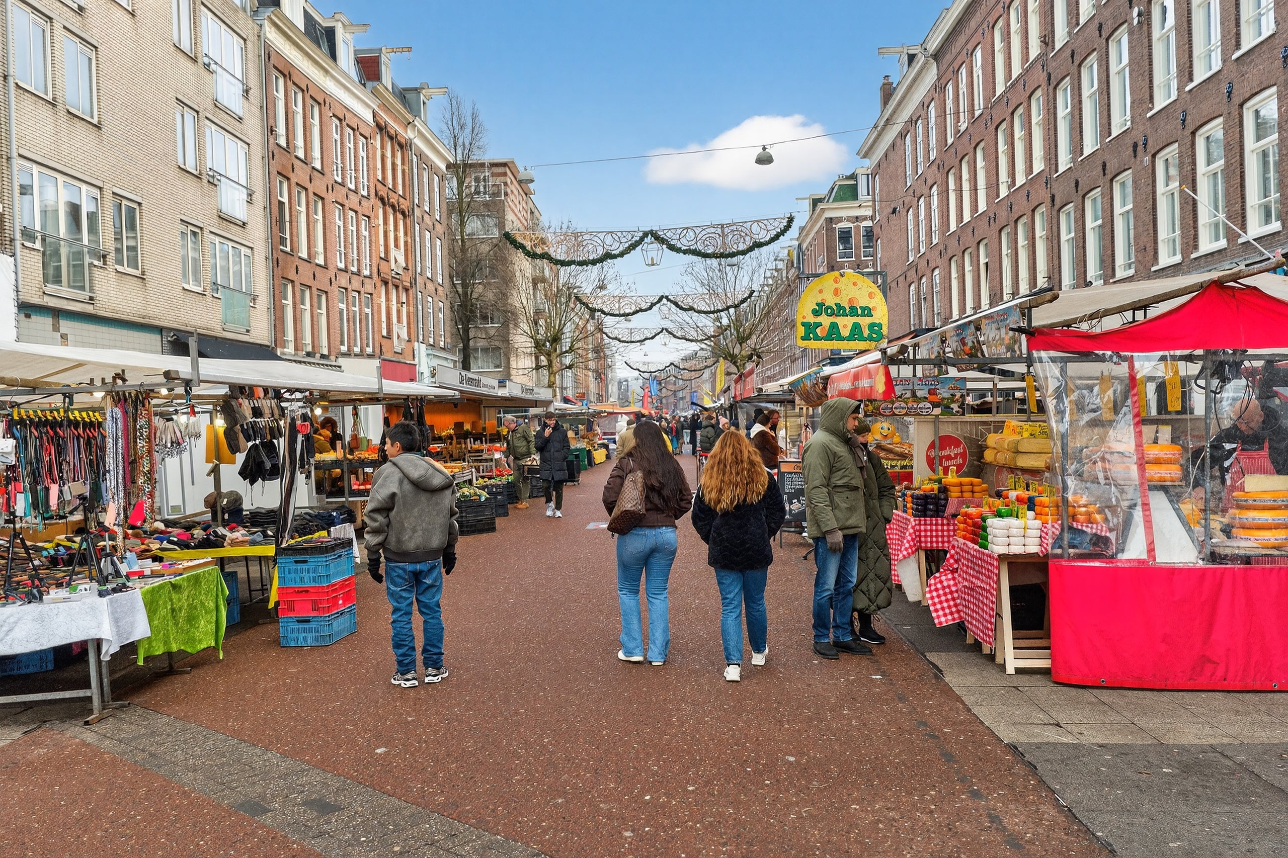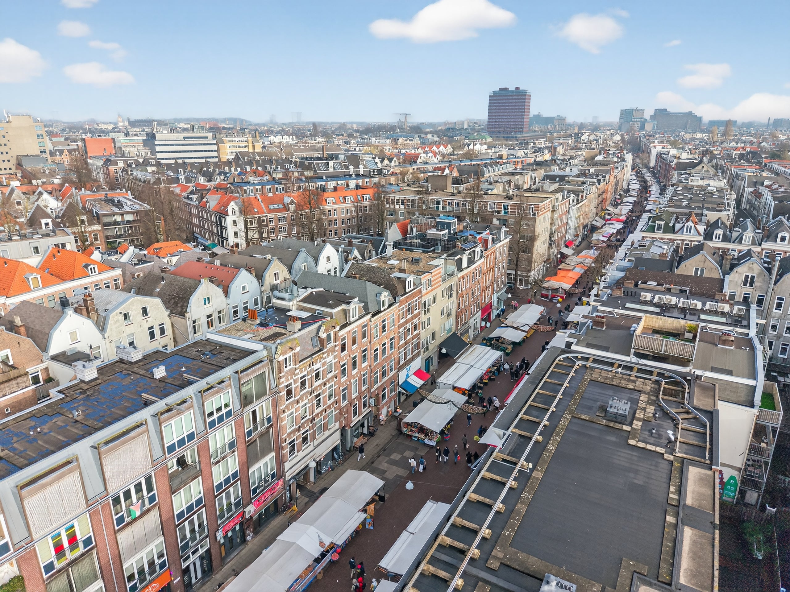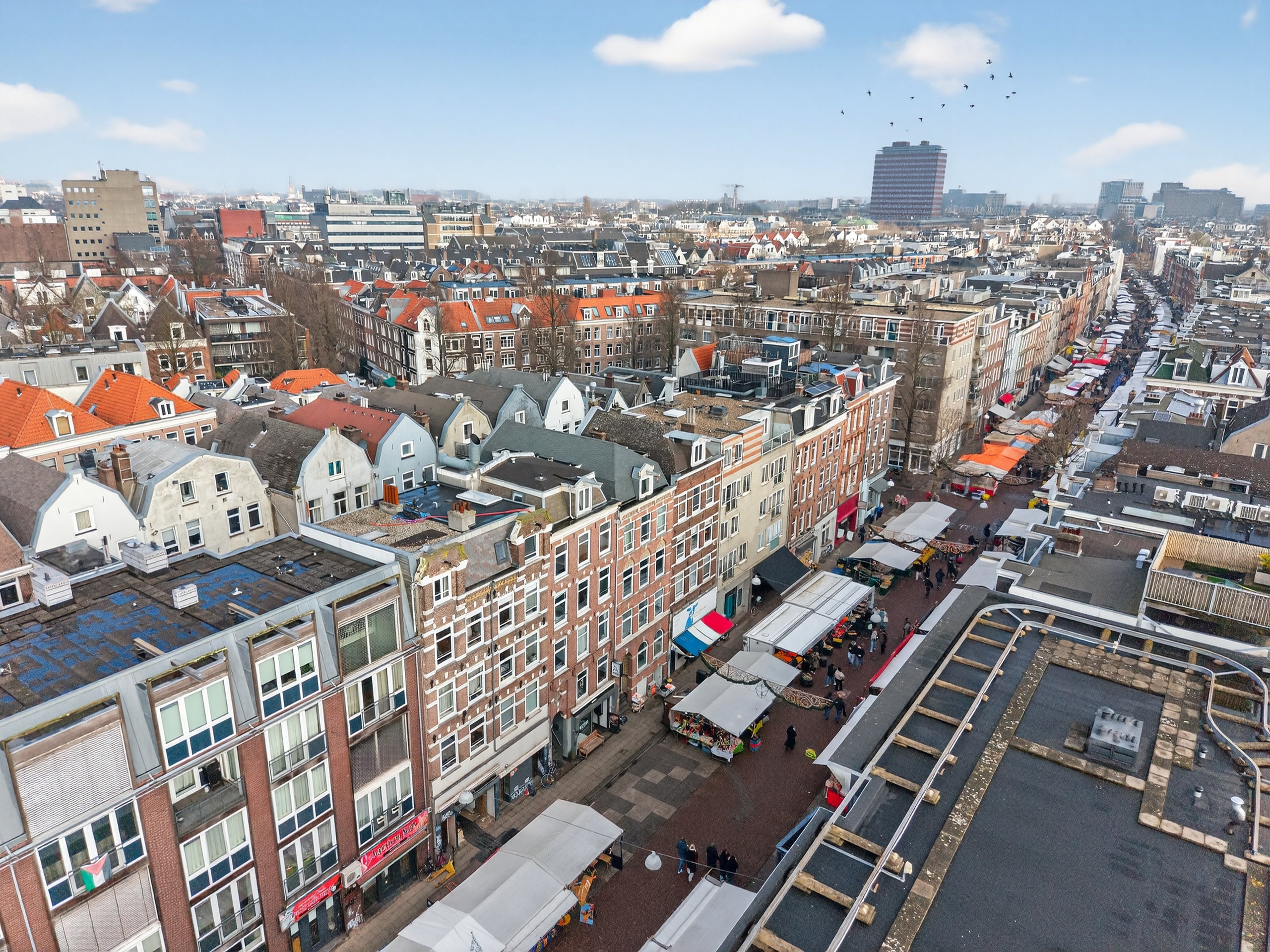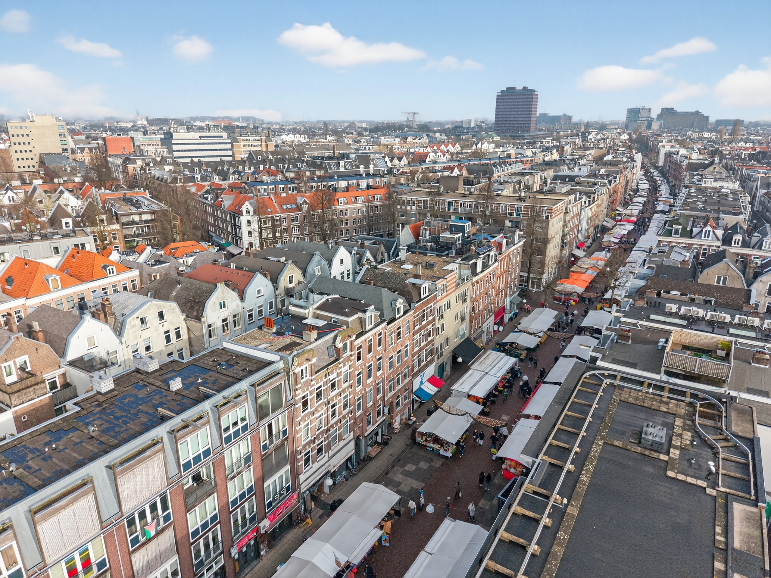 In het hart van De Pijp, op de levendige Albert Cuypstraat, bevindt zich dit unieke dubbel bovenhuis. Het appartement bestrijkt de 4e en 5e verdieping en heeft twee ingangen, badkamers en keukens, perfect voor dubbele bewoning of gezinsgebruik. De 4e verdieping biedt een lichte woonruimte met grote ramen, een open keuken en een slaapkamer aan de achterzijde, plus een stijlvolle badkamer. De 5e verdieping is een ruim studioappartement met mogelijkheden voor extra slaapkamers, een ruime badkamer met ligbad, en toegang tot een balkon met uitzicht. Gelegen dichtbij de Albert Cuypmarkt, zijn winkels, restaurants en het openbaar vervoer op loopafstand. Met een woonoppervlak van 63 m², twee slaapkamers en een energielabel G, biedt dit appartement veel mogelijkheden.