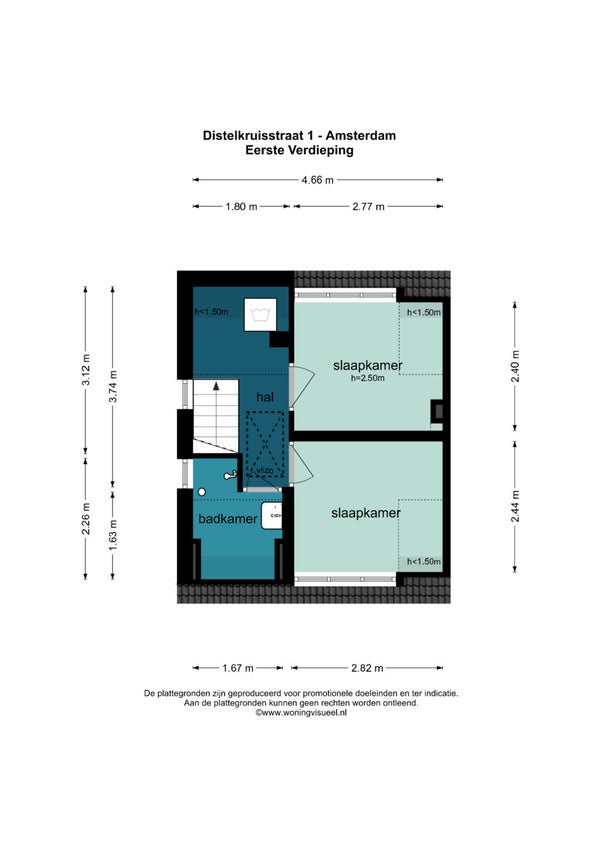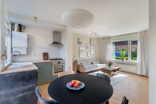 - De beneden + bovenwoning heeft een woonoppervlakte van 48 m² en beschikt over 3 kamers, waarvan 2 slaapkamers;