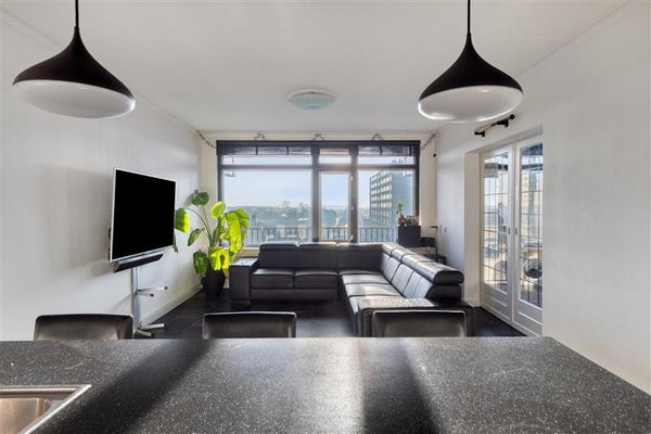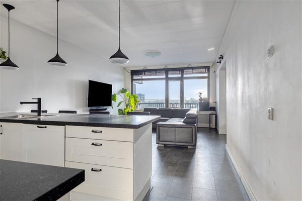 De woonkamer is ruim en licht, een heerlijke plek om na een drukke dag tot rust te komen. Dankzij de grote ramen en de ligging op de 11e verdieping geniet je hier volop van natuurlijk licht en een fantastisch vrij uitzicht over de omgeving. Aansluitend aan de woonkamer vind je de open keuken. Deze is uitgerust met alles wat je nodig hebt: een koel-vriescombinatie, oven, 5-pits gaskookplaat, afzuigkap en vaatwasser. Praktisch en helemaal klaar voor jouw culinaire avonturen.