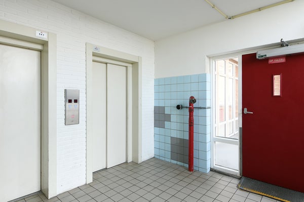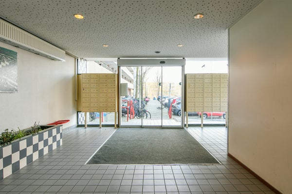 Via de centrale entree op de begane grond met bellentableau, postbussen en natuurlijk de lift ga je naar boven.