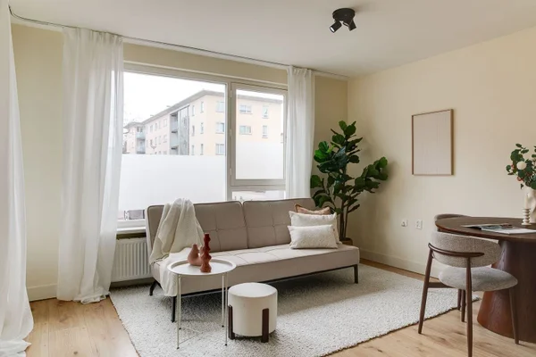 • De galerijflat heeft een woonoppervlakte van 59 m² en beschikt over 3 kamers, waarvan 2 slaapkamers;