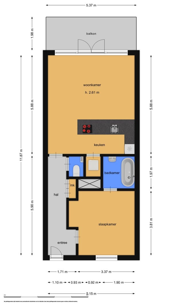 -Woonoppervlakte circa 61 m² (NEN2580-meetrapport aanwezig);