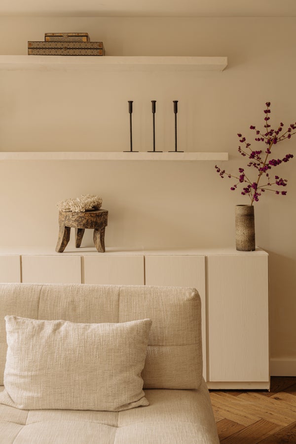 - De tussenverdieping heeft een woonoppervlakte van 58 m² en beschikt over 3 kamers, waarvan 2 slaapkamers;